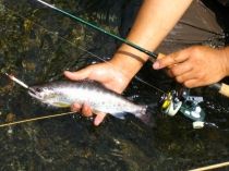 今回の目的は女性陣のゴマすりやメタボ対策の他に色々あるが(笑)ストリームで綺麗なヤマメを釣ること。