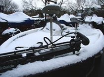 晴れの予報だったのに、ボート上に積雪10cm・・・