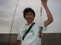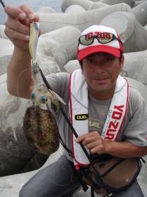 ■釣場速報のエギング特集の取材で、編集の斉藤さん、石坂君と陸っぱりで釣行。